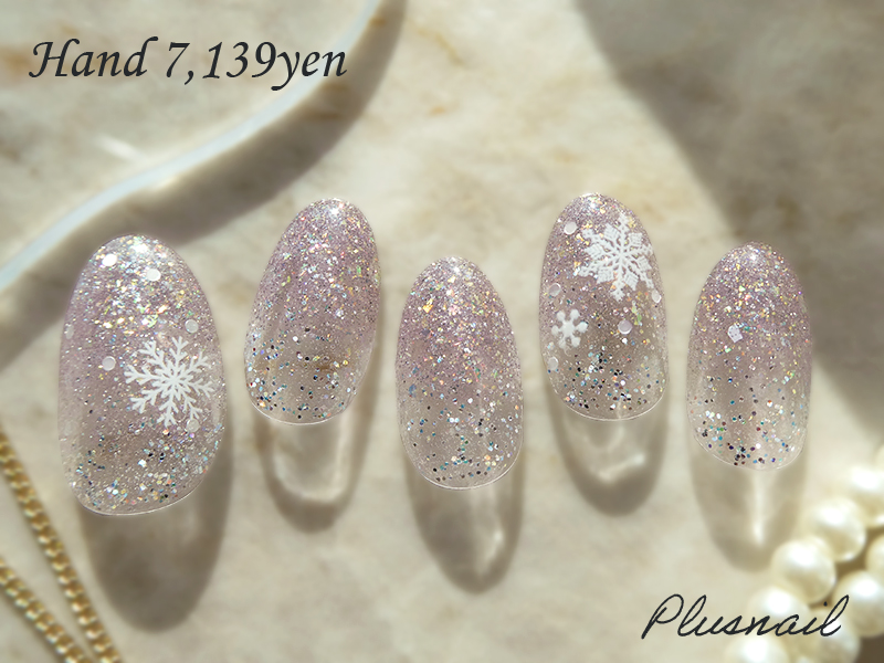 きらめく街にしんしんと降る雪の結晶ネイル❄️